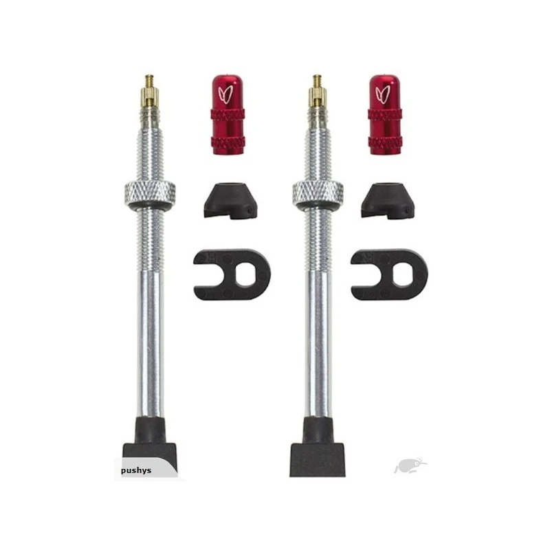 Formati: blister con due Caffélatex Tubeless Valve, due adattatori conici in gomma e due rondelle in metallo, una chiave per meccanismi Presta