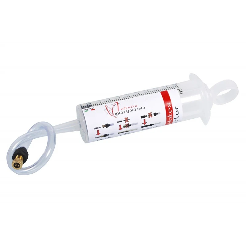 EFFETTO MARIPOSA CAFFELATEX INJECTOR Questa siringa permette di inserire lo speciale sigillante Caffatexel attraverso la valvola, per sigillare il pneumatico in modo rapido e pulito.