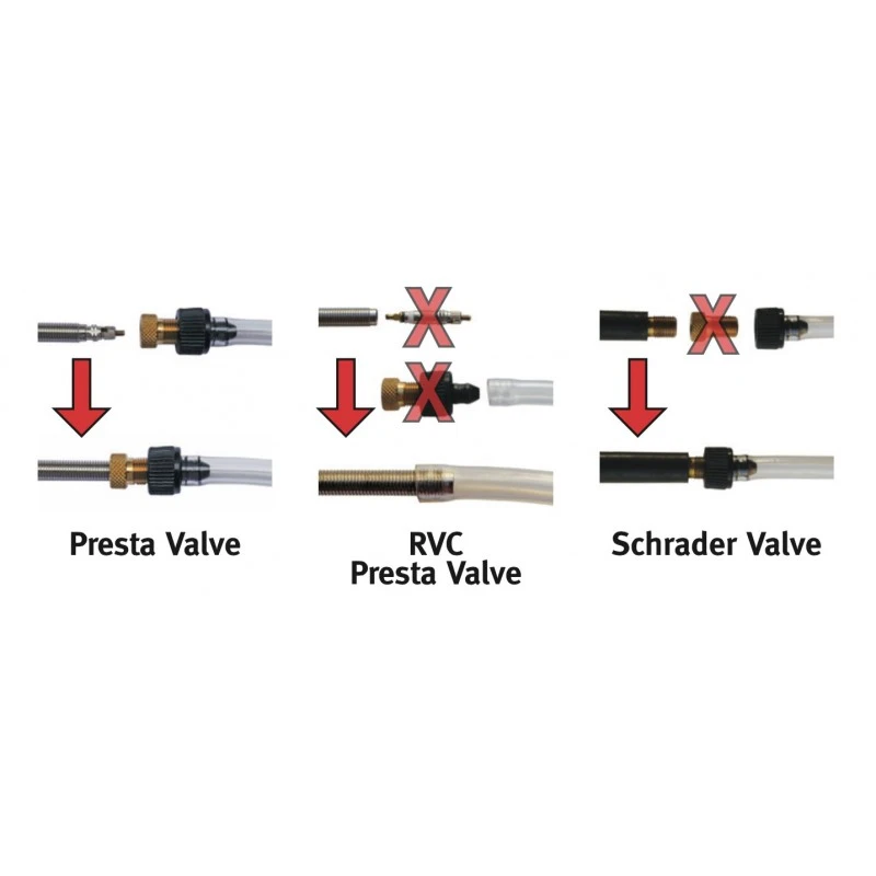 Formati:siringa con capacità 100 ml, con adattatore Presta/Schrader in ottone e tubo in silicone