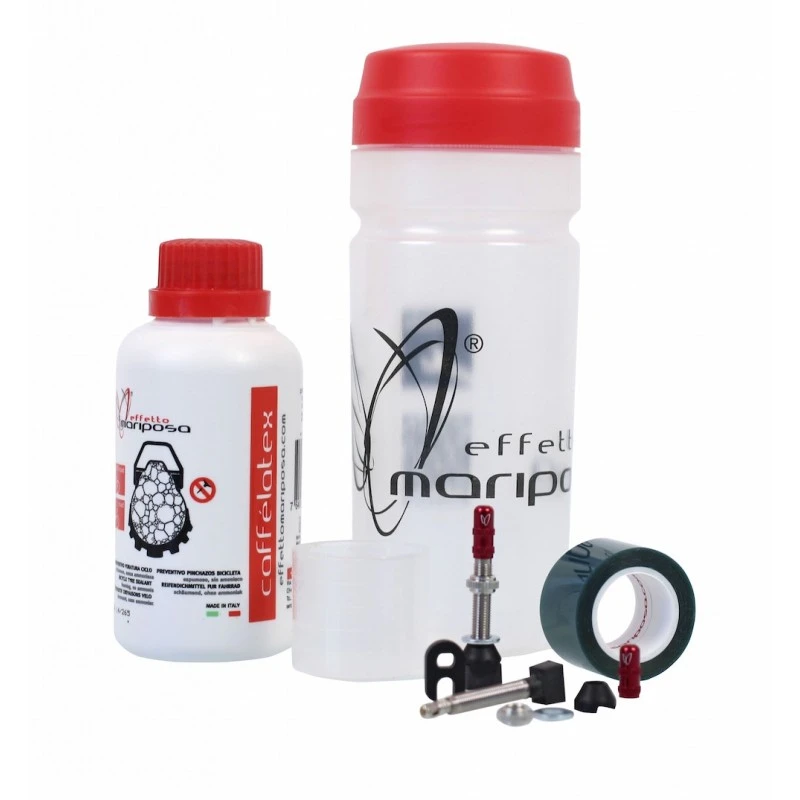 Per sfruttare al massimo i benefici del sigillante Caffe’latex abbiamo creato kit completi, per trasformare ruote standard per mountain-bike in tubeless (2 ruote per kit).