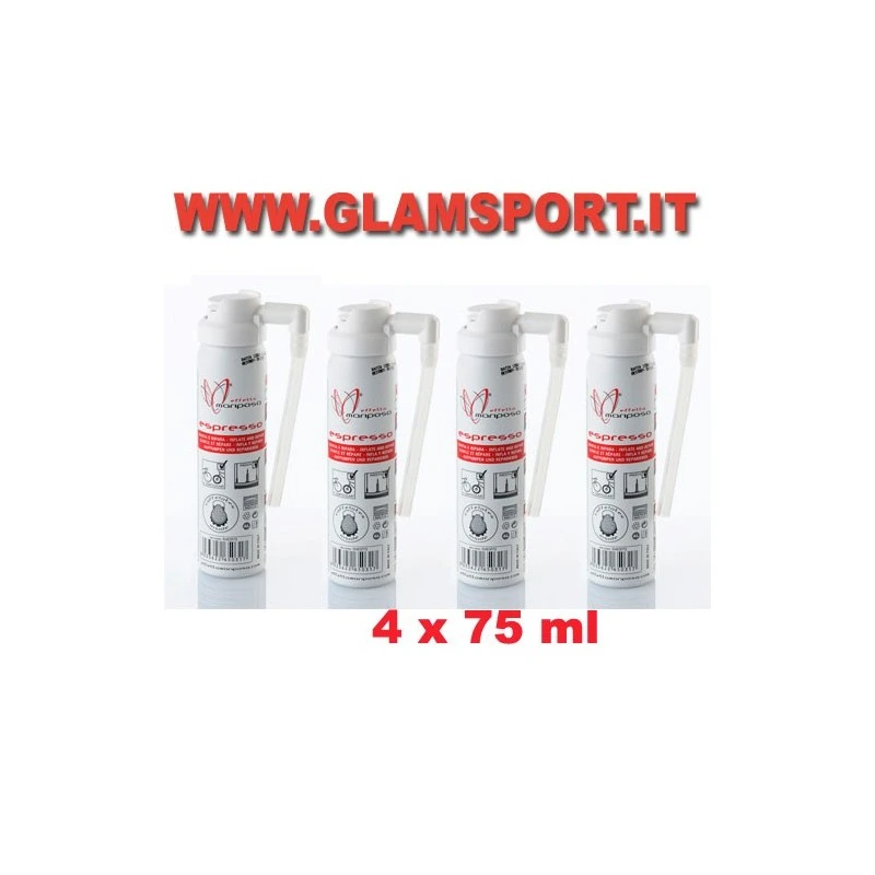 - Senza ammoniaca: l’azione riparante è garantita dal sigillante Caffélatex (senza ammonica), ottimizzato qui per la specifica funzione di gonfia e ripara, innocuo nei confronti di camere e coperture. Espresso non danneggia il Caffélatex, se già presente nello pneumatico, ma ne agevola il funzionamento.