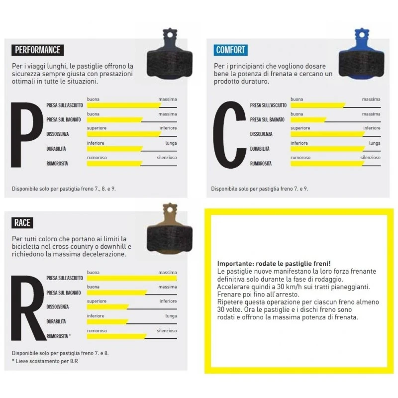 – Race: massime prestazioni di frenata, maggiore usura rispetto alle pastiglie Performance