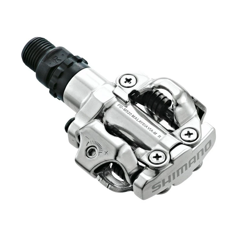 La maggiore apertura del corpo pedale previene l’accumulo di fango, corpo in lega di alluminio, perno a cartuccia in CrMo, regolatore e indicatore di tensione,con tacchette SH 51